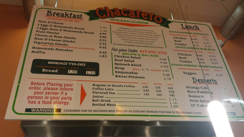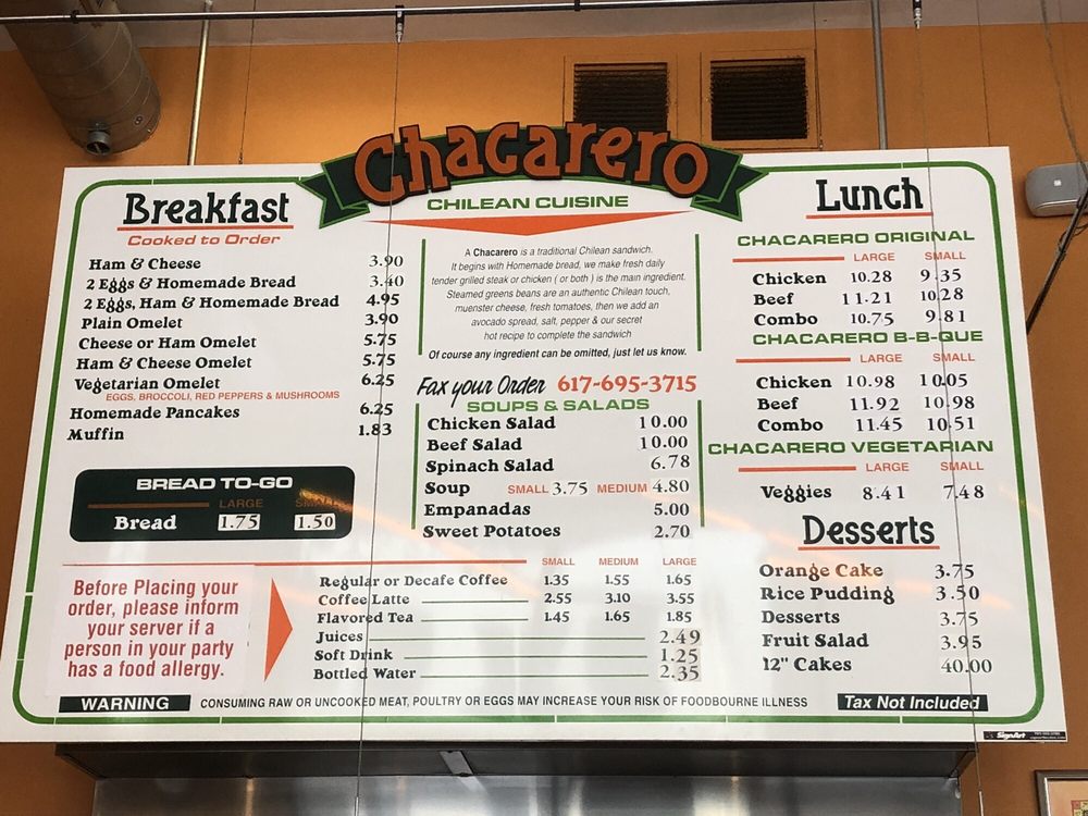 Chacarero Menu (Update 2025)